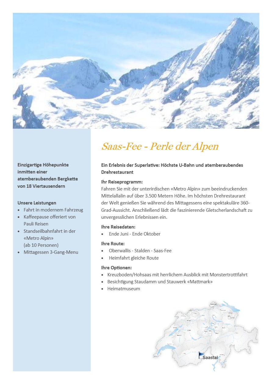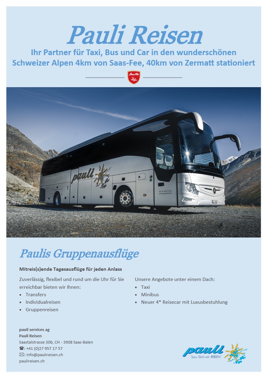 Saastalstrasse 306, CH-3908 Saas-Balen Tel. +41 (0)27 957 17 57 Fax +41 (0)27 957 33 17 info@paulireisen.ch